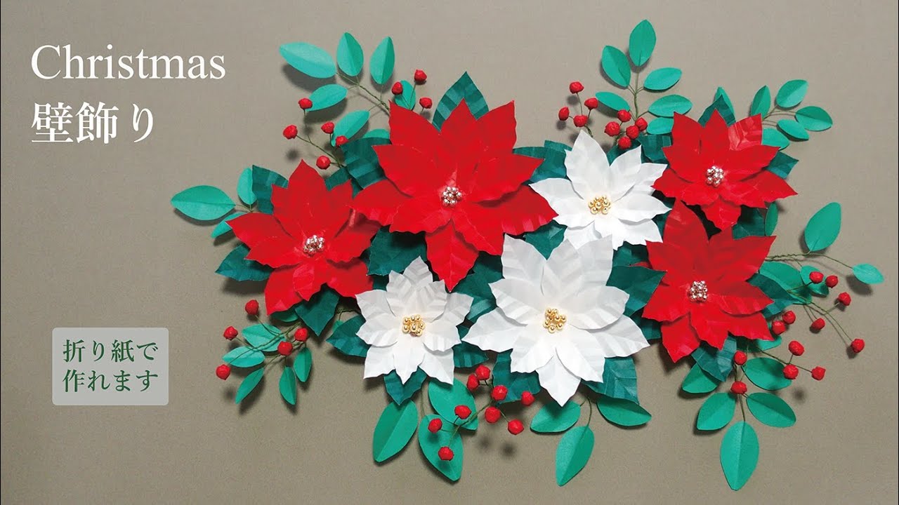 | 説明文 | 折り紙のポインセチアを使った、クリスマスにぴったりな壁飾りの作り方を紹介します。赤と緑のコントラストが美しく、簡単なのに豪華で華やかな仕上がり。ドーナツ型の台紙に貼れば、手作りクリスマスリースとしても... |